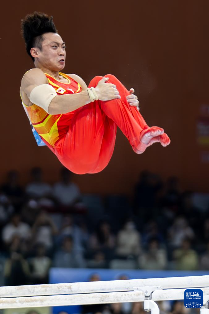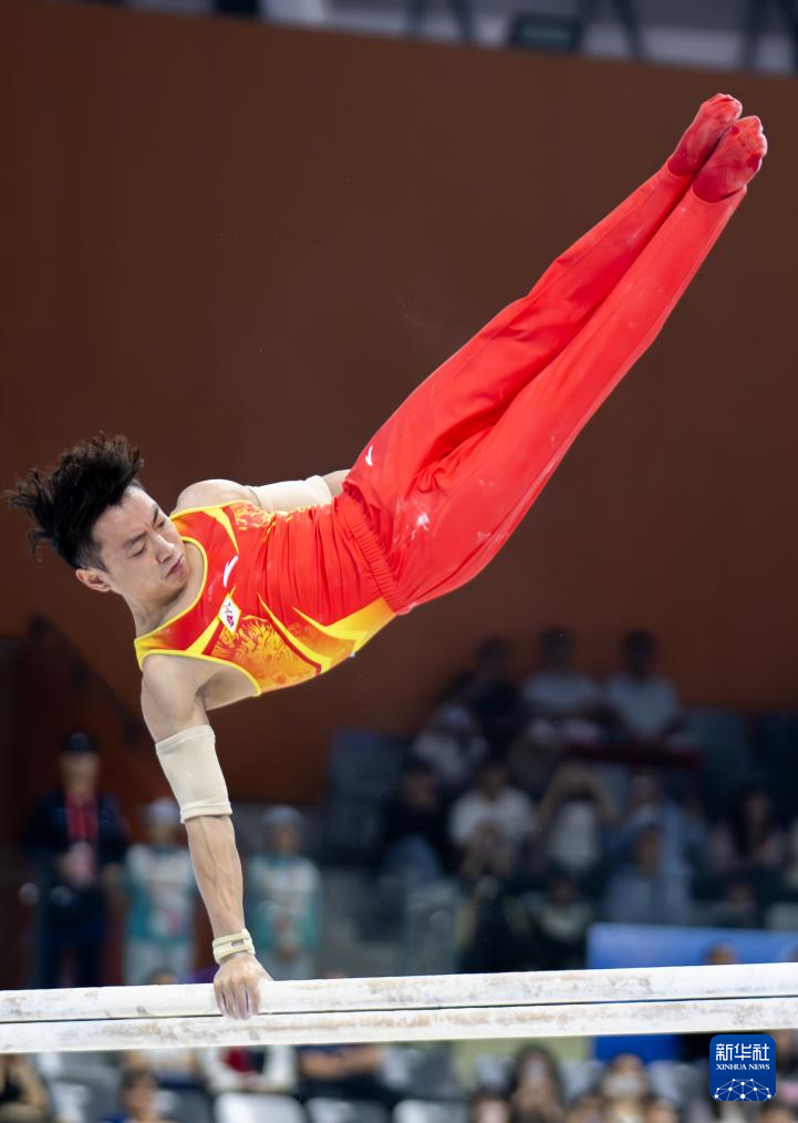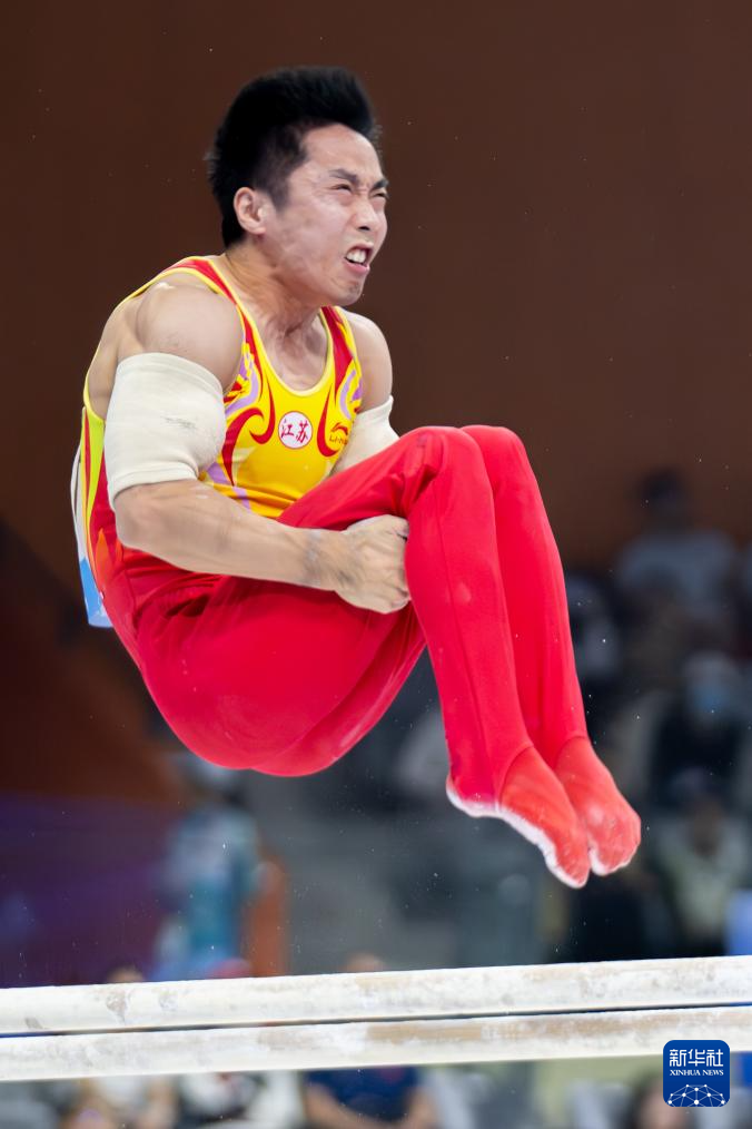 11月14日,江苏队选手尤浩在双杠竞赛中。终究,他取得男人鞍马吊环双杠万能决赛第三名。