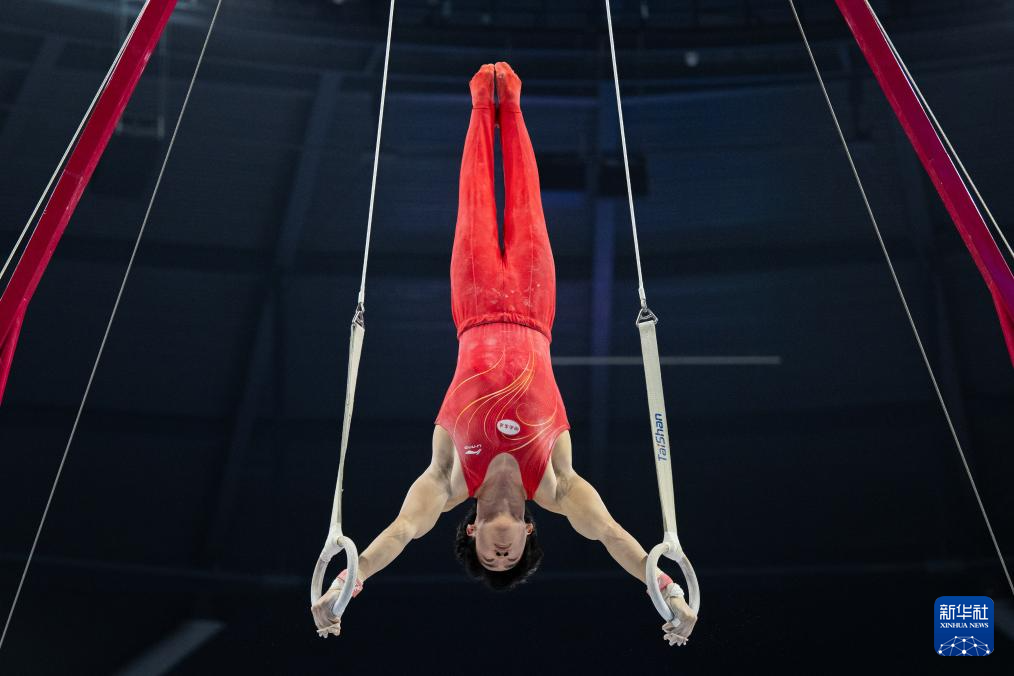 11月14日,湖南队选手张博恒在吊环竞赛中。终究,他取得男人鞍马吊环双杠万能决赛亚军。